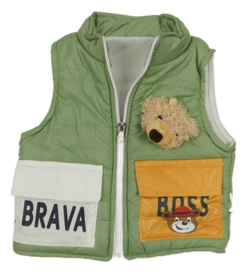 Zelená šušťáková zateplená vesta s odepínacím medvěďom