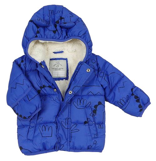 Modro-čierna šušťáková zimná bunda s dinosaurami a kapucňou George