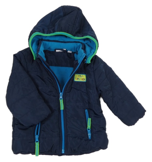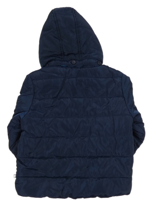 Tmavomodrá šušťáková prešívaná zimná bunda s nášivkou a kapucňou Liegelind