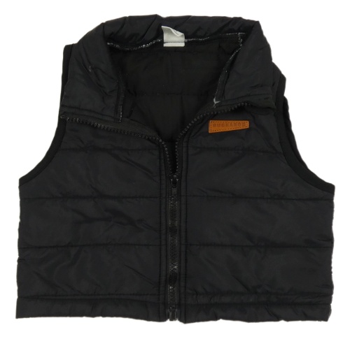 Čierna prešívaná šušťáková zateplená vesta s nášivkou SHEIN