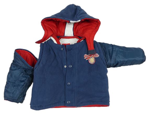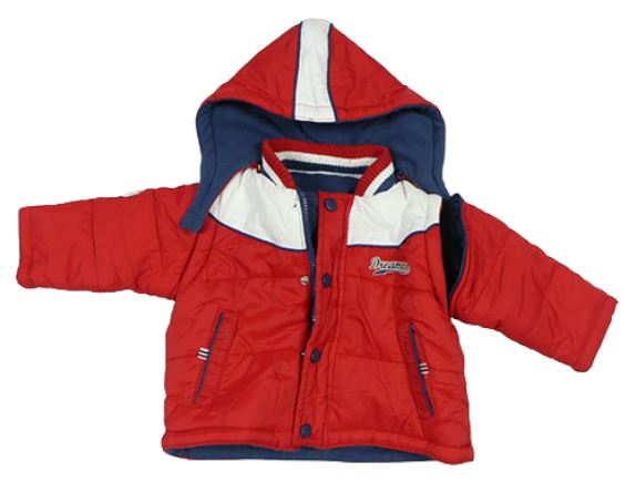 • Červeno-biela šušťáková zimná obojstranná bunda s nápisom a kapucňou Charanga