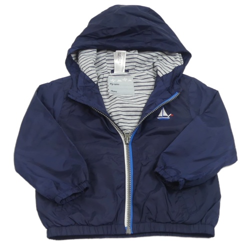 Tmavomodrá šušťáková jesenná bunda s výšivkou a kapucňou C&A