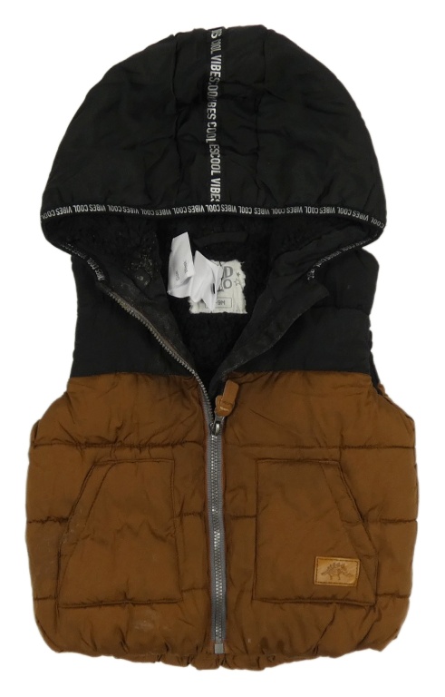 Čierno-hnedá šušťáková zateplená vesta s kapucňou F&F