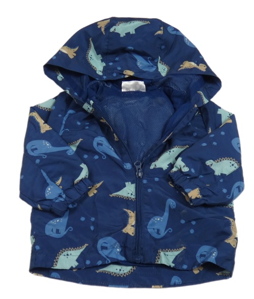 Tmavomodrá šušťáková jesenná bunda s dinosaurami a kapucňou Ergee