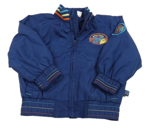 Tmavomodrá šušťáková jesenná bunda s autom Okay