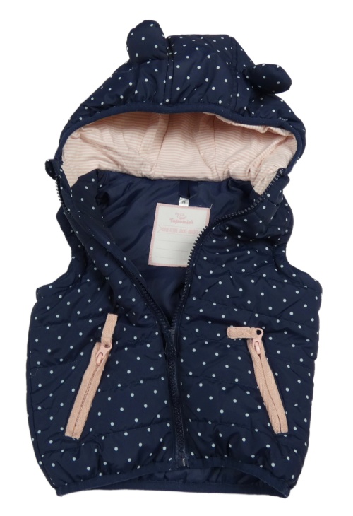 Tmavomodrá bodkovaná á šušťáková zateplená vesta s kapucňou Topomini