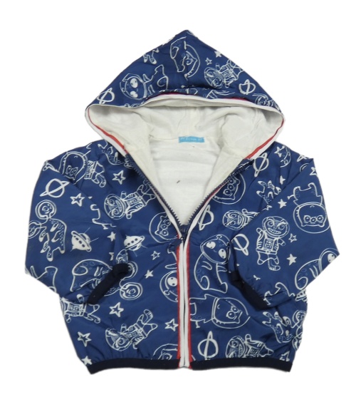 Tmavomodrá šušťáková jesenná bunda s vesmírom a kapucňou