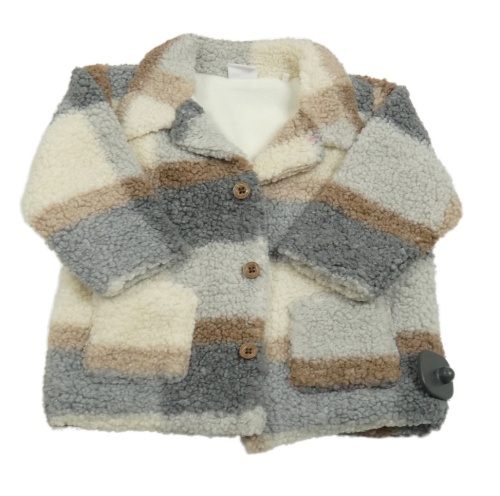Nové - Sivo-hnedo-smotanová kockovaná huňatá zateplená košeľová bunda F&F