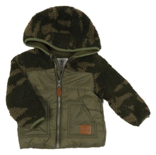 Khaki-army šusťákovo/huňatá zateplená bunda s kapucňou F&F