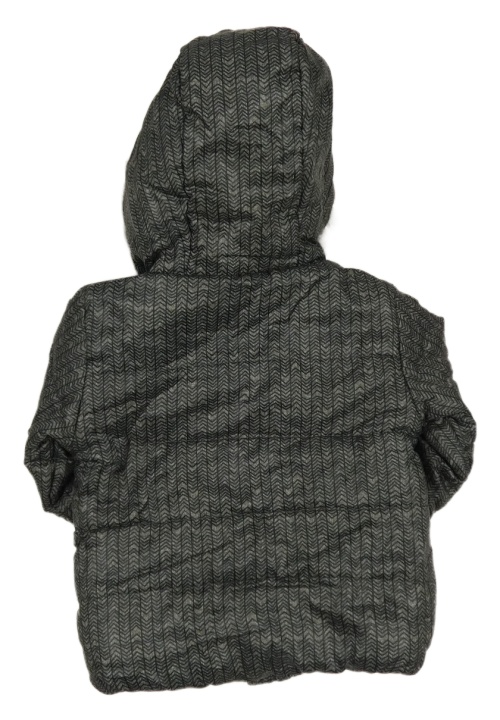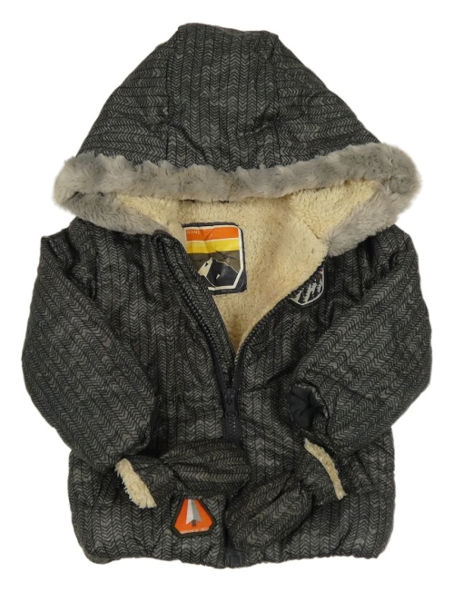 • Tmavošedo-čierna vzorovaná šušťáková zimná bunda s nášivkou a kapucí + rukavice Zeeman