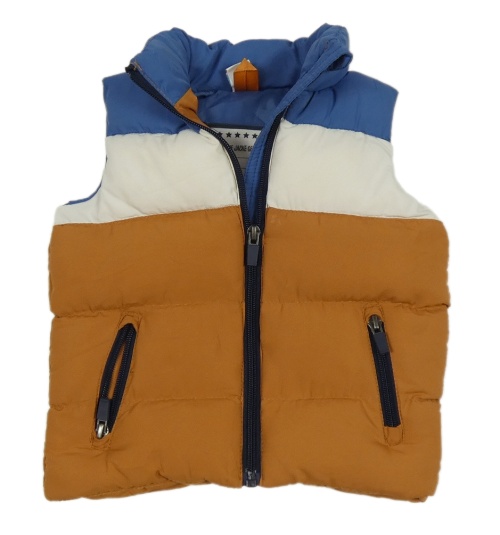 Modro-bielo-okrová šušťáková zateplená vesta Topomini