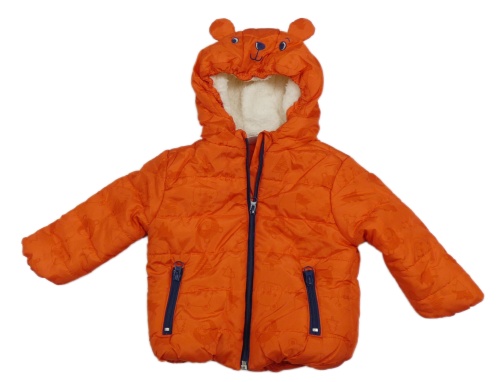 Oranžová šušťáková zateplená bunda s medveďmi a kapucňou Ergee