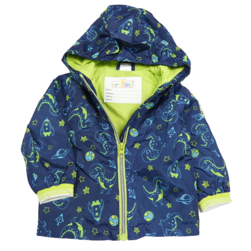 Tmavomodrá šušťáková jarná bunda s diny a vesmírom a kapucňou