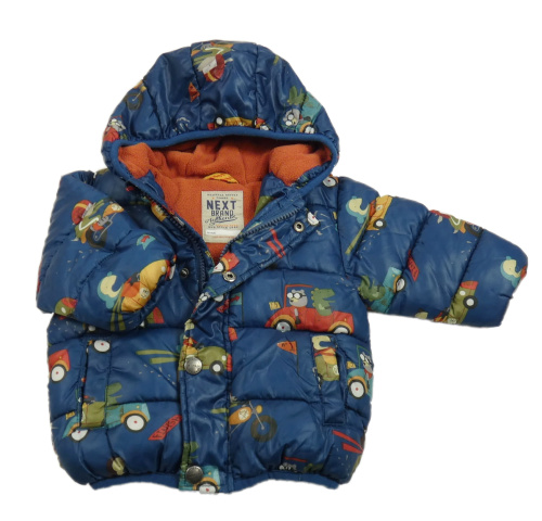 Tmavomodrá šušťáková zimná bunda s autami so zvířaty a kapucňou Next