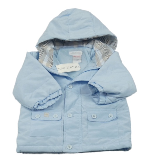 Nové - Svetlomodrá šušťáková zateplená bunda s výšivkou a kapucňou