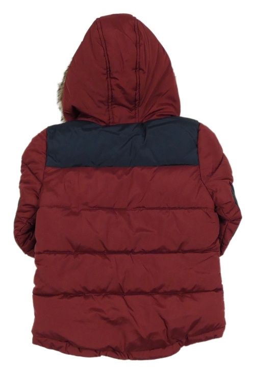 Vínovo-tmavomodrá šušťáková zimná bunda s kapucňou s kožešinou Dunnes Stores