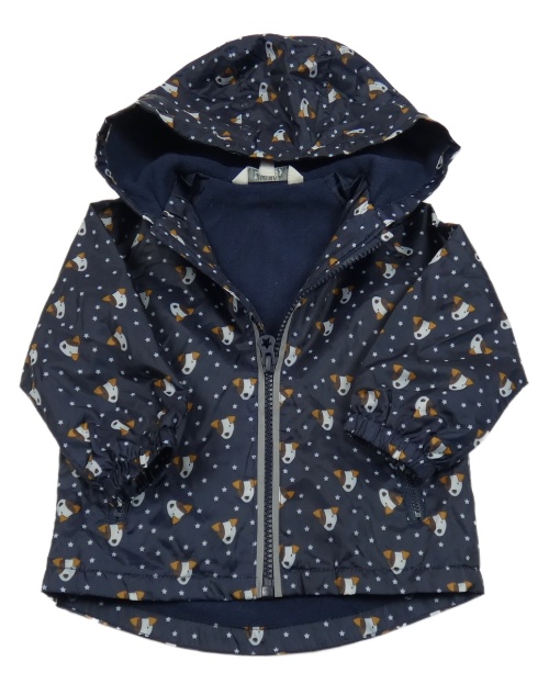 Tmavomodrá šušťáková jarná bunda s pejsky a kapucňou Peacocks