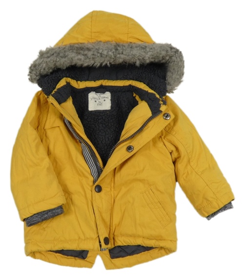 Žltá šušťáková zateplená bunda s kapucňou s kožešinou F&F