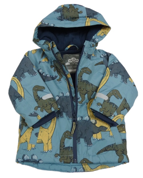 Modrošedá šušťáková zimná bunda s dinosaurami a kapucňou Next