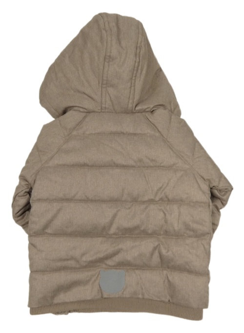 Nové - Svetlohnedá melírovaná prešívaná šušťáková zimná bunda s medvěďom a kapucňou Topomini