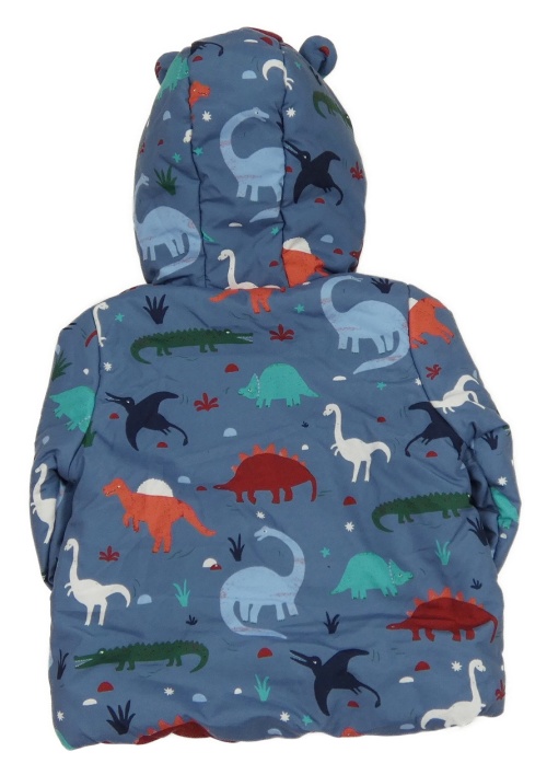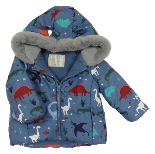 Modrá šušťáková zimná bunda s dinosaurami a kapucňou John Lewis