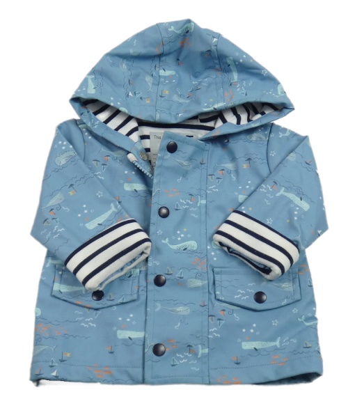 Modrá nepromokavá jarná bunda s velrybami a kapucňou Tu