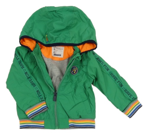 Zelený šusťákový jarní bomber s nášivkou a pruhmi a nápismi a kapucňou C&A