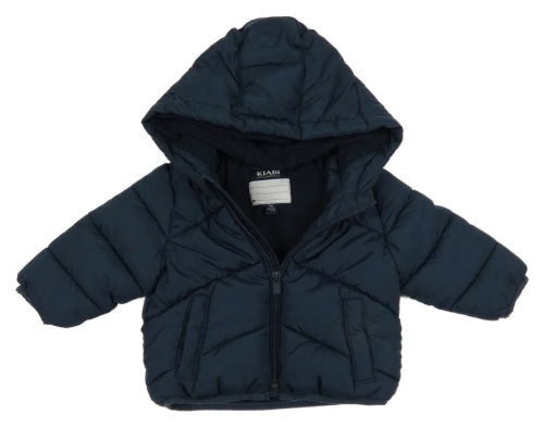 Tmavomodrá prešívaná šušťáková zimná bunda s kapucňou KIABI