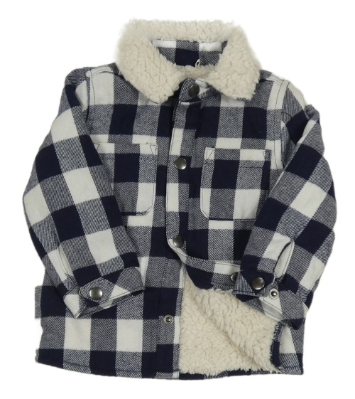 Tmavomodro-biela kockovaná zateplená košeľová bunda Tu