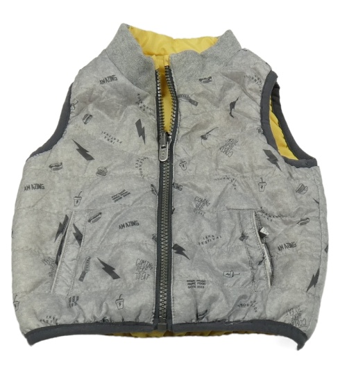 • Sivá melírovaná prešívaná šušťáková zateplená obojstranná vesta s obrázkami IKKS