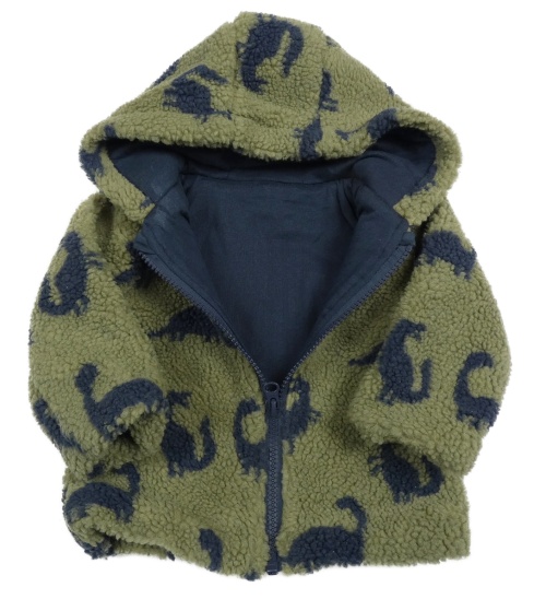 Khaki huňatá podšitá bunda s dinosaurami a kapucňou St. Bernard