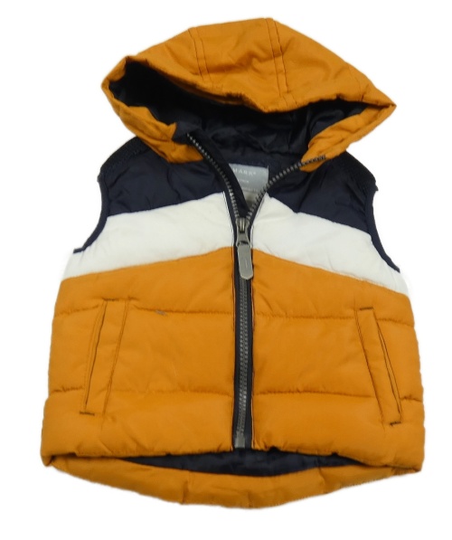 Okrovo-tmavomodro-biela šušťáková zateplená vesta s kapucňou Primark