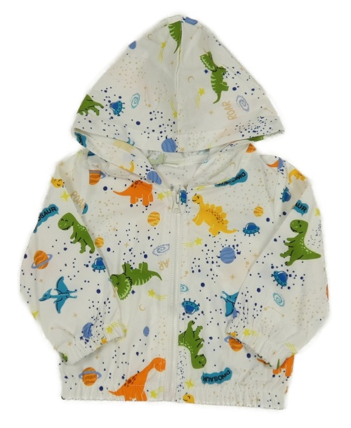 Bielo-farebná šušťáková ľahká bunda s dinosaurami a kapucňou
