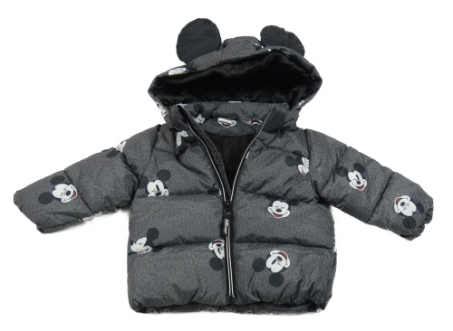 Tmavosivá melírovaná šušťáková zimná bunda s Mickeym a kapucňou H&M