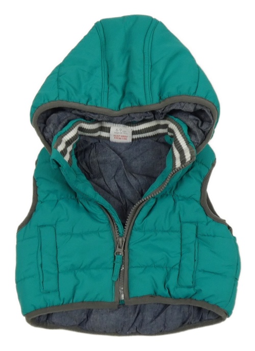 • Modrozeleno-tmavosivá prešívaná šušťáková zateplená vesta s kapucňou miniclub