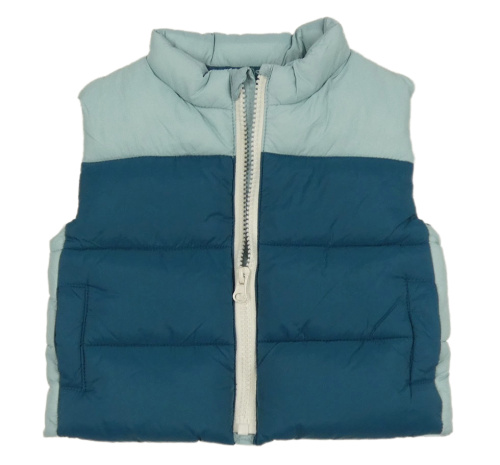 Petrolejovo-svetlomodrá prešívaná šušťáková zateplená vesta KIABI
