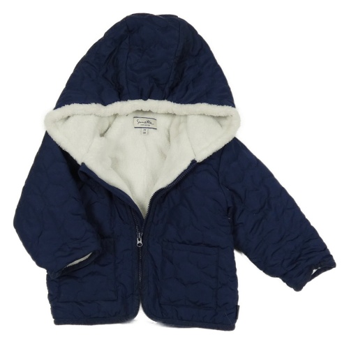 Tmavomodrá šušťáková prešívaná zateplená bunda s kapucňou