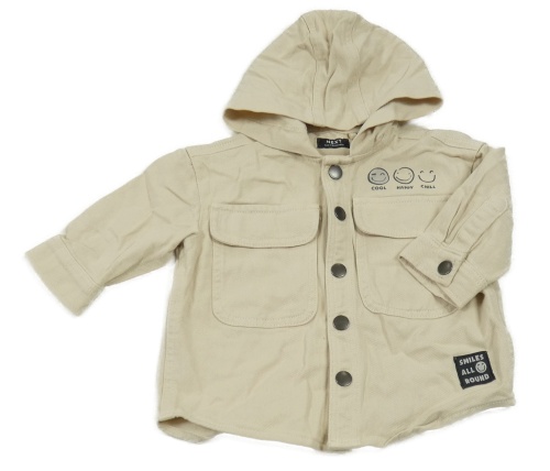 Svetlobéžová ľahká rifľová bunda so smajlíkom a kapucňou Next