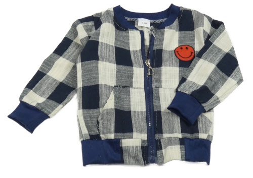 Tmavomodro-smotanová kockovaná bunda so smajlíkom