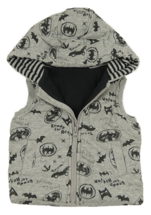 Sivá melírovaná prešívaná zateplená vesta s Batmany a kapucňou George