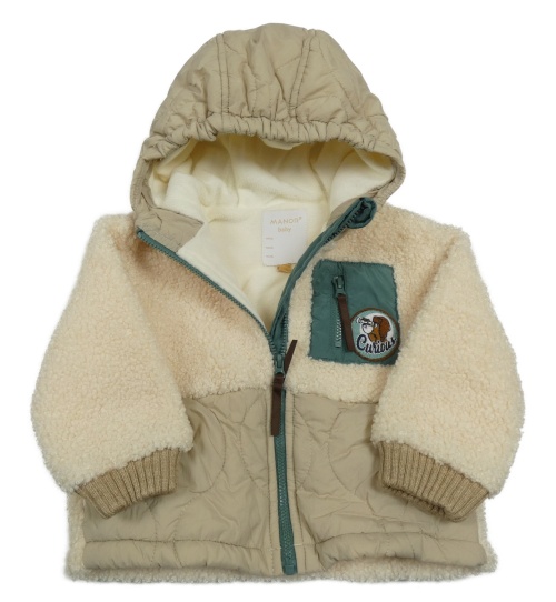 Smetanovo-svetlobéžová huňato/šusťáková podšitá bunda s psíkom a kapucňou MANOR