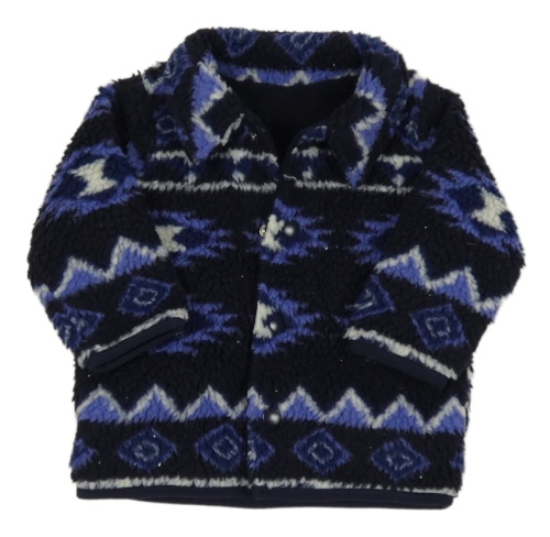 Tmavomodro-modro-biela vzorovaná huňatá podšitá bunda s golierikom St. Bernard