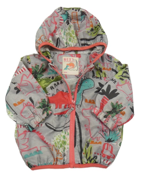 Sivá šušťáková jarná bunda s dinosaurami a kapucňou Next