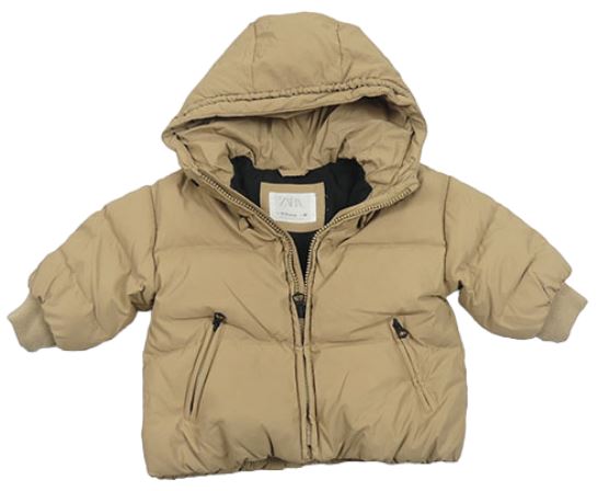 Béžová prešívaná šušťáková zimná bunda s kapucňou ZARA