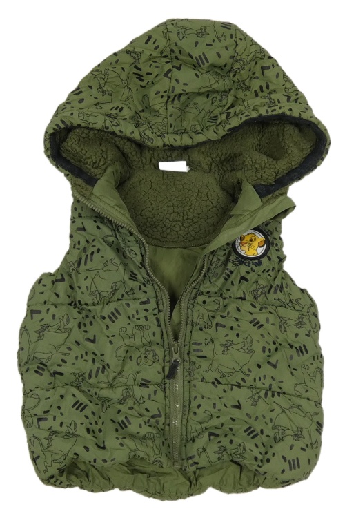 Khaki vzorovaná šušťáková zateplená vesta s kapucí - Levíý kráľ Disney