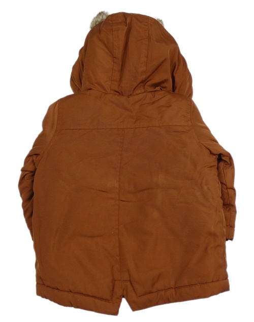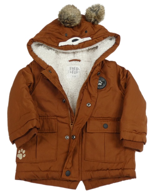 Hnedá šušťáková zimná bunda s nášivkou a kapucňou s bambulemi F&F