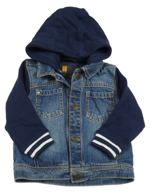 Modrá rifľová bunda s teplákovymi rukávy a kapucňou Next