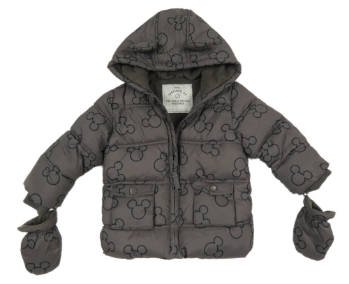 • Tmavosivá prešívaná šušťáková zimná bunda s Mickey a kapucňou s oušky + rukavice George
