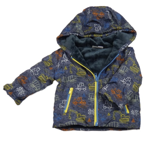 Tmavomodrá šušťáková zimná bunda s autami a kapucňou Mick Mack