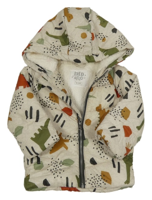 Béžová vzorovaná šušťáková zimná bunda s dinosaurami a kapucňou F&F